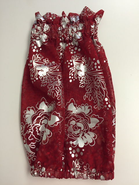 Sheer Red and Metallic Silver Flowers with triple elastic at top.